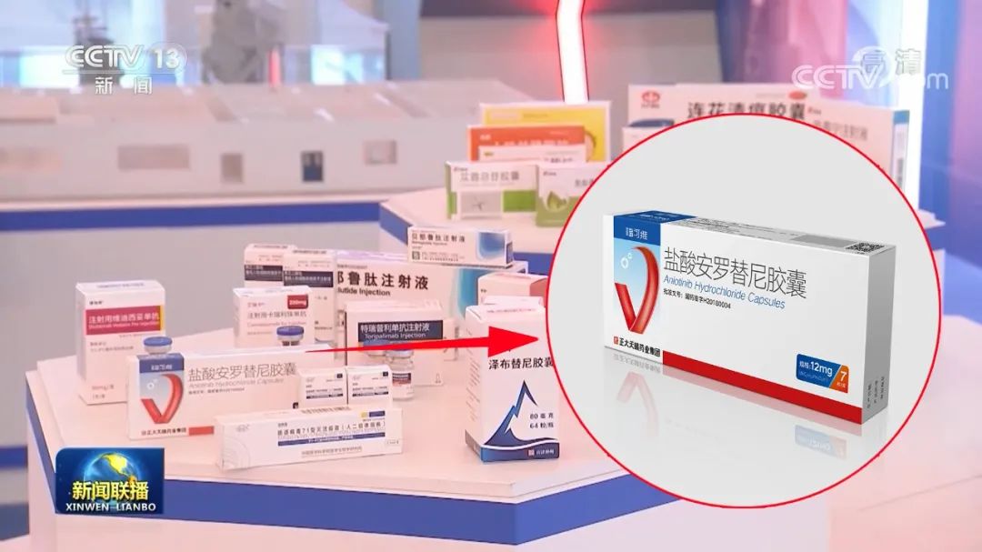亮相本次展覽的鹽酸安羅替尼膠囊(福可維),由正大天晴自主研發,為國家1類新藥,是一種新型小分子酪氨酸激酶抑制劑,多靶點、雙功效、靶活性強、選擇性高,具有優異的PK/PD特性,先后3次獲得國家“重大專項”支持。該產品于2018年5月上市,目前已獲批晚期非小細胞肺癌、軟組織肉瘤、小細胞肺癌、甲狀腺髓樣癌4大適應癥。